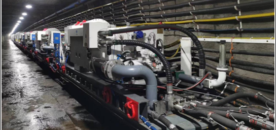 “煤礦高效能大流量遠距離智能配送水基動力系統成套裝備”項目開發了多泵站并聯集中式智能變頻控制系統和大流量蓄能穩壓裝備及回液中繼系統;發明了井下大流量乳化液泵沖擊脈沖預測方法、乳化液智能配比及矯正系統;提出了用液實時輕量算法+用液超前預測模型的符合控制方案,實現了3500m以上的超遠距離工作面穩壓穩流智能配送。